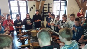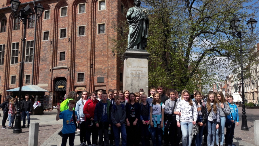 Dnia 20.04.2017 r. uczniowie klas szóstych o godz. 5.45 spotkali się pod szkołą, aby wspólnie z wychowawcami wziąć udział w wycieczce dydaktycznej do Torunia. Po przybyciu do grodu Kopernika w pierwszej kolejności nasza młodzież udała się do Centrum Nowoczesności "Młyn Wiedzy", gdzie przez prawie 3 godziny aktywnie zwiedzała bardzo ciekawe wystawy z zakresu nauk przyrodniczych. Następnym punktem wycieczki była wizyta w Żywym Muzeum Piernika, gdzie uczniowie uczestniczyli w warsztatach wypieku najbardziej znanego spośród wszystkich symboli Torunia. Na zakończenie uczestnicy wycieczki udali się w okolice Starego Miasta, gdzie wykonali tradycyjną fotografię pod pomnikiem Mikołaja Kopernika.