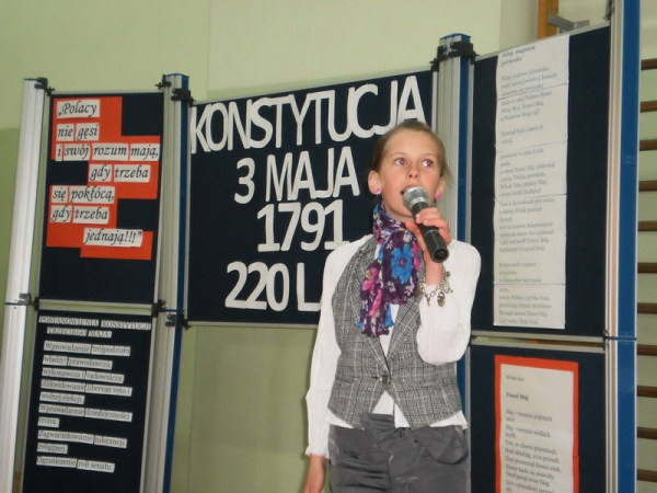 Dnia 04 maja 2011 r. uczniowie naszej szkoły uczestniczyli w apelu poświęconym 220 rocznicy uchwalenia Konstytucji 3 Maja przygotowanym przez opiekunów USS - panie: Justynę Szudarek i Paulinę Galińską.
