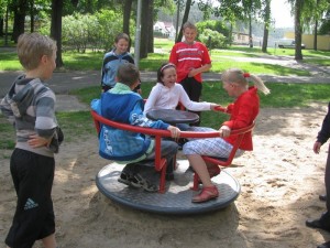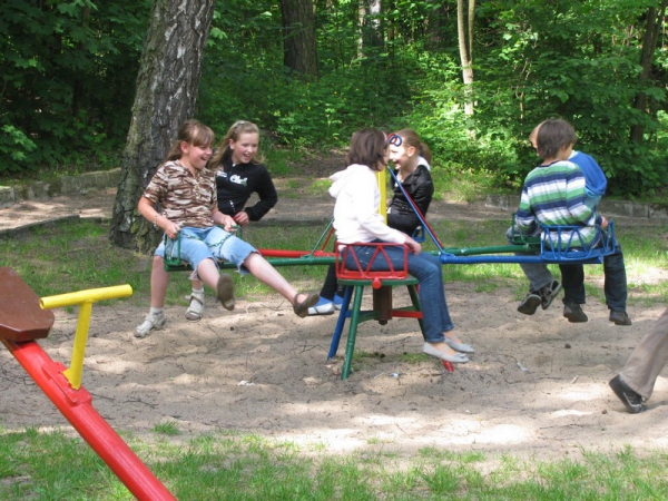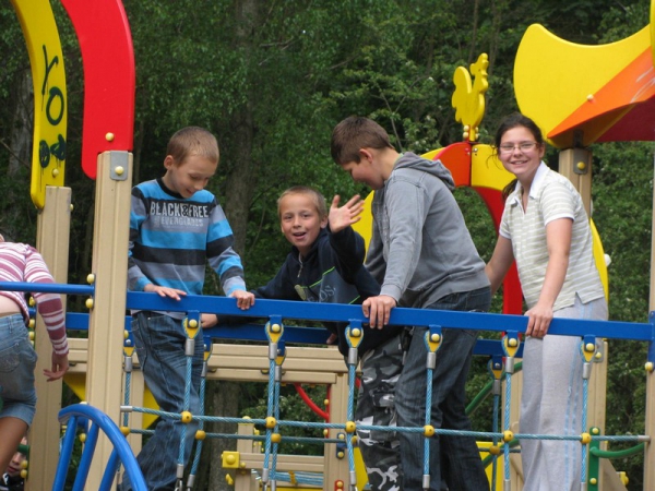 Humory dopisywały, szczególnie w momencie, gdy pani Dorota Nożewnik pozwoliła skorzystać z placu zabaw, co widać na fotografiach.
