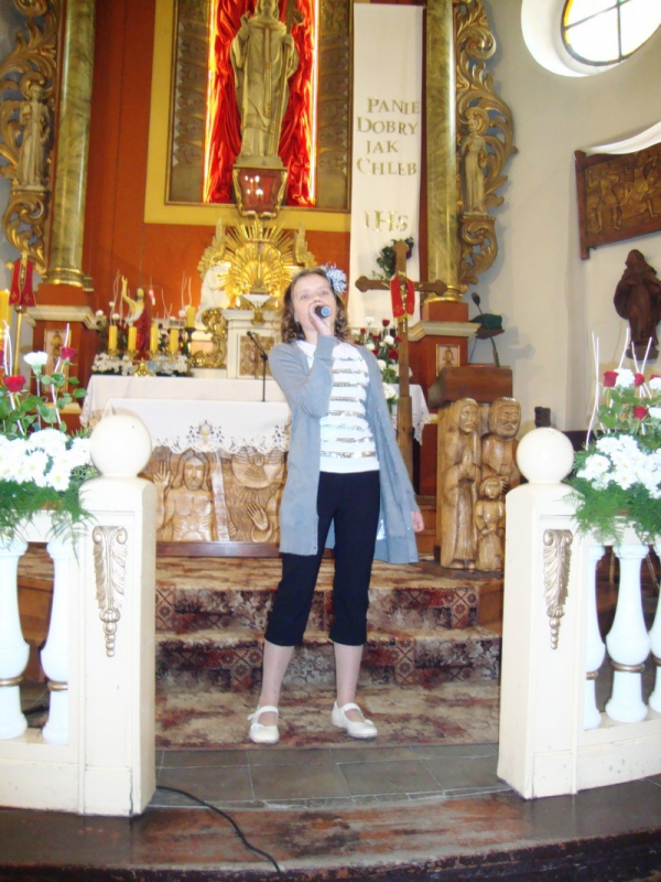 Wszystkie dziewczynki pięknie zaprezentowały przygotowane pieśni i piosenki. Zosia zdobyła miejsce II oraz Klucz Wiolinowy Matki Boskiej Kruszewskiej.
