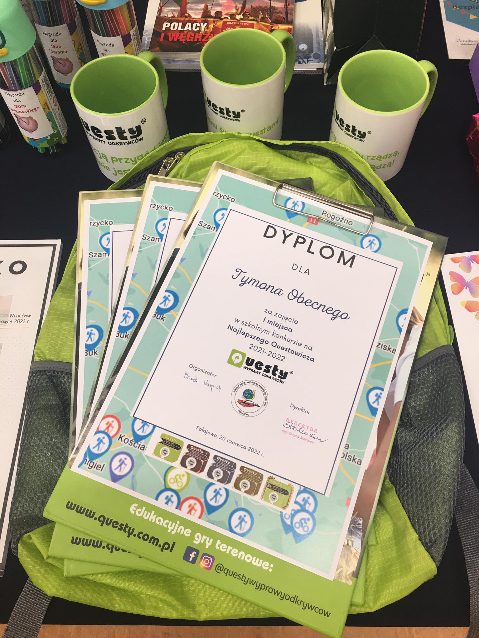 20 czerwca 2022 r. rozstrzygnięty został całoroczny konkurs na Najlepszego Questowicza Szkoły Podstawowej im. Arkadego Fiedlera w Połajewie. Z 56 questami na koncie wygrał Tymon Obecny, na II miejscu uplasował się jego brat, Tobiasz, który ukończył 55 questów. Miejsce na podium uzyskał również Hubert Turostowski, który ukończył 33 questy. Gratulujemy zwycięzcom oraz dziękujemy Questy - Wyprawy Odkrywców za wsparcie.