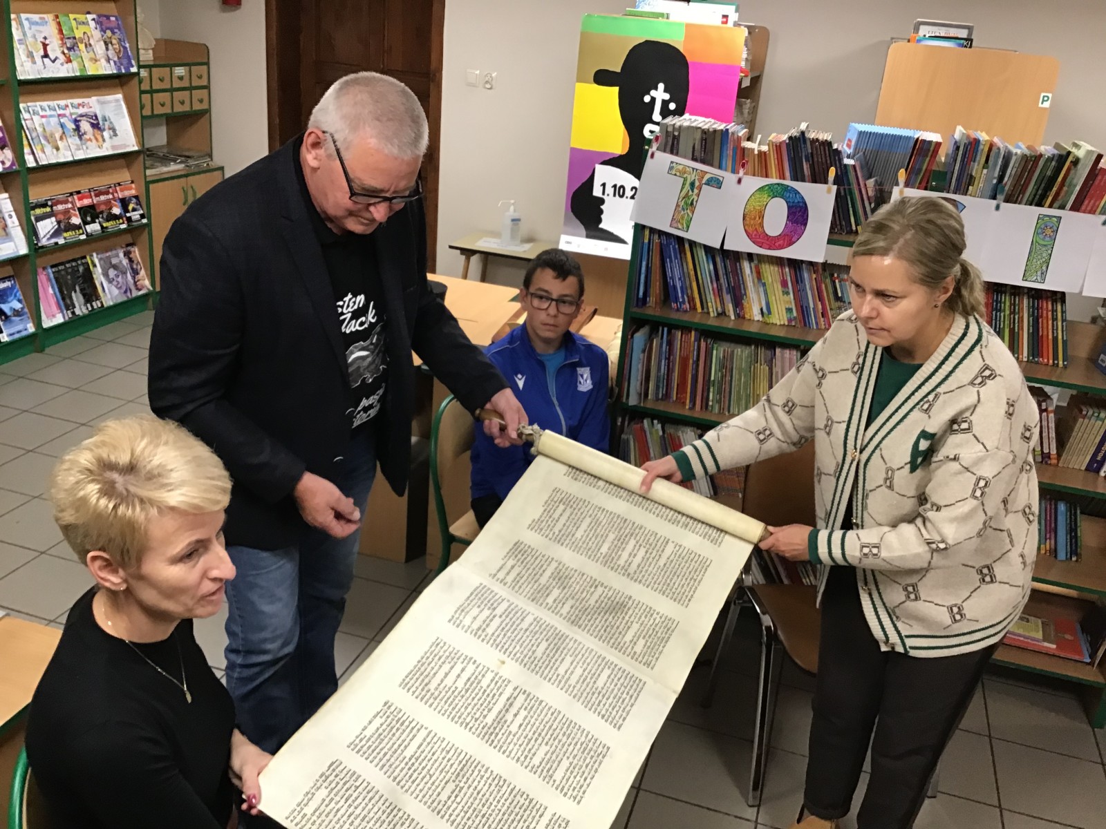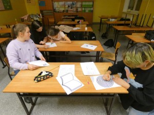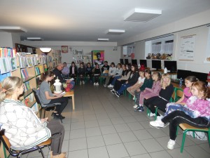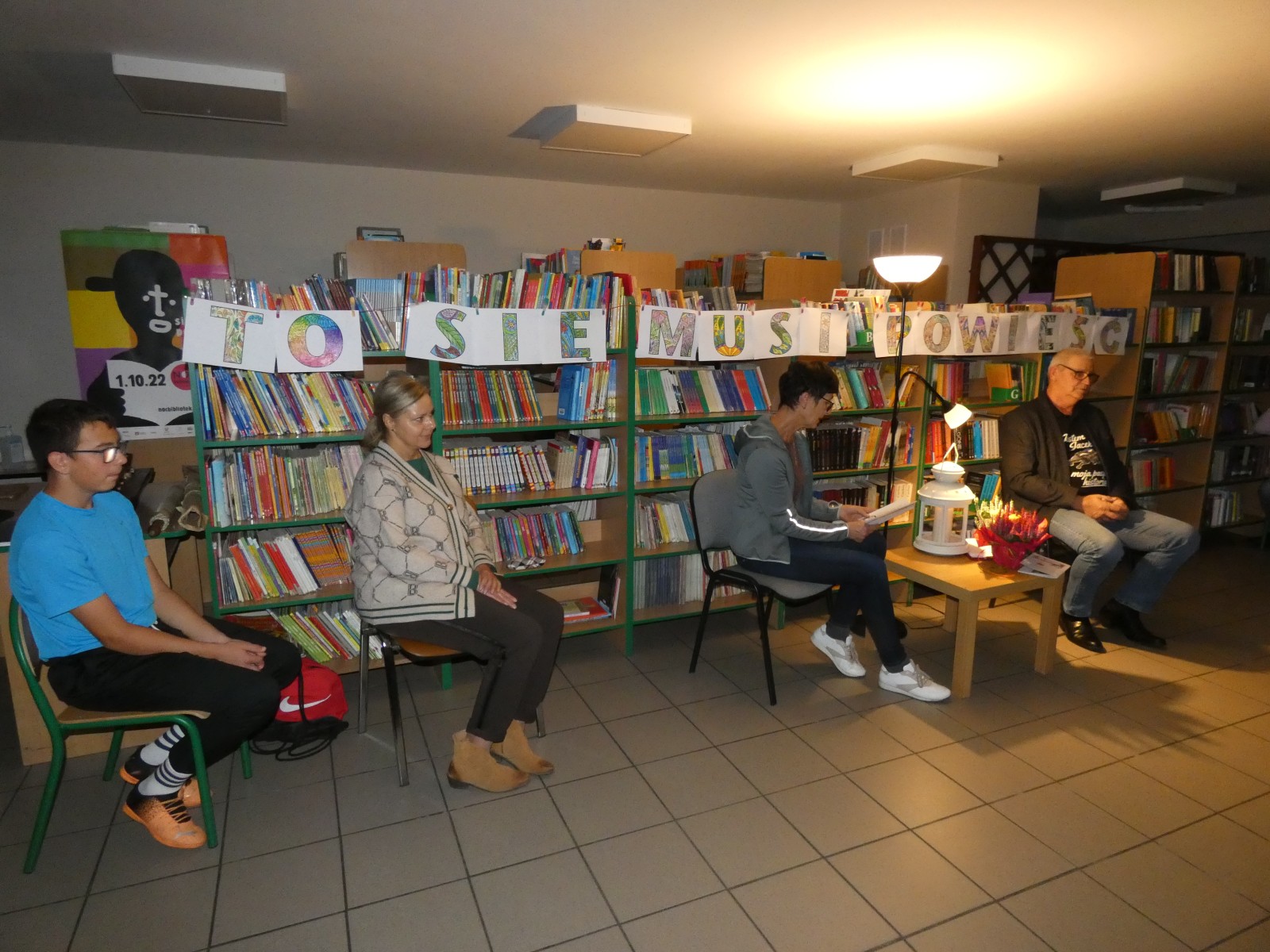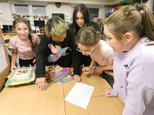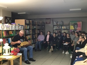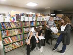 W piątkowy wieczór 30 września wybrani uczniowie naszej szkoły dołączyli do ogólnopolskiej Nocy Bibliotek, której hasło w tym roku brzmiało: „To się musi powieść”. Wieczór rozpoczął się od spotkania z niezwykłym człowiekiem o wielu pasjach i talentach panem Jackiem Dereżyńskim. Podczas spotkania uczniowie usłyszeli w jaki sposób pasje, zainteresowania wpływają na osobisty rozwój człowieka. Pan Jacek opowiedział o tym, co inspiruje Go do pisania wierszy i ballad, które później zostały przeczytane przez samego autora, nauczycieli i uczniów. W dalszej części wieczoru próbowaliśmy naszych zdolności kulinarnych przygotowując pizzę, dekorując stoły i wspólnie spożywając posiłek. Nie zabrakło też aktywności czytelniczych. Uczniowie podzieleni na grupy w przydzielonych salach rozwiązywali zagadki czytelnicze z wykorzystaniem księgozbioru biblioteki. Wieczorne spotkanie zakończyliśmy zabawą w biblioteczne kalambury, która zachęciła wszystkich do aktywnego udziału i dostarczyła wiele pozytywnych emocji. O północy z bagażem wielu wspaniałych przeżyć wracaliśmy do domu.