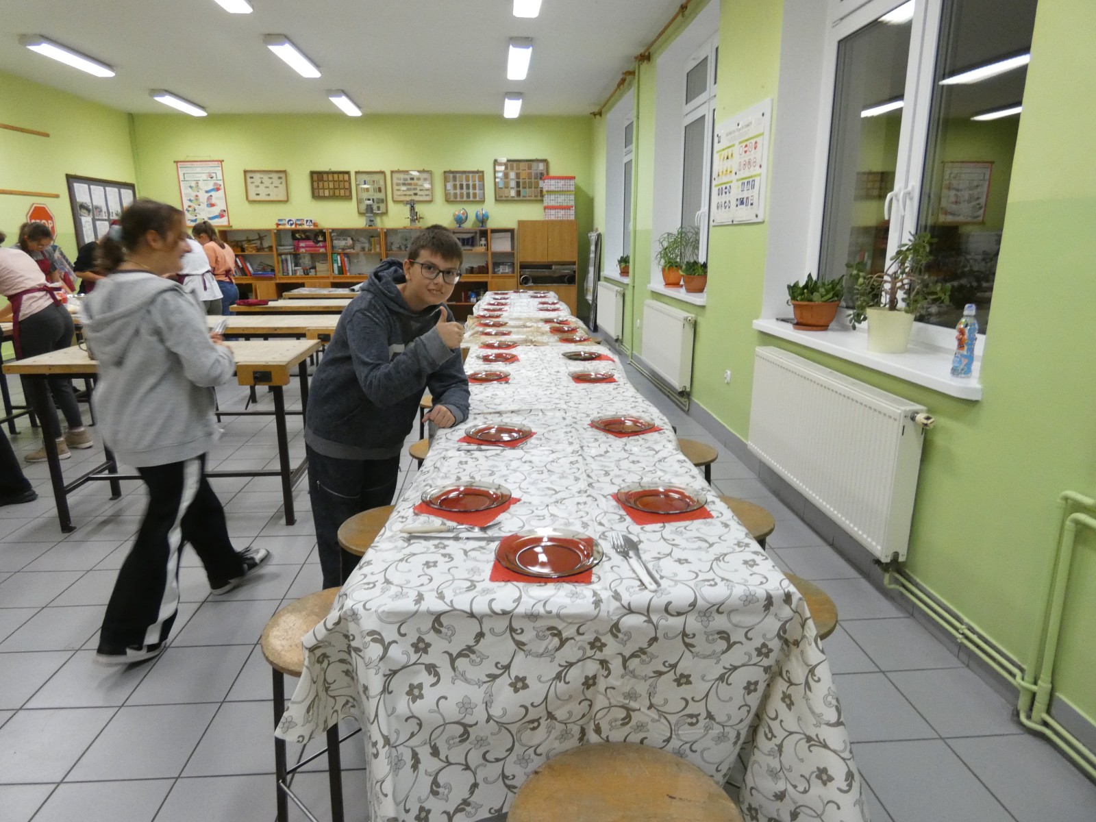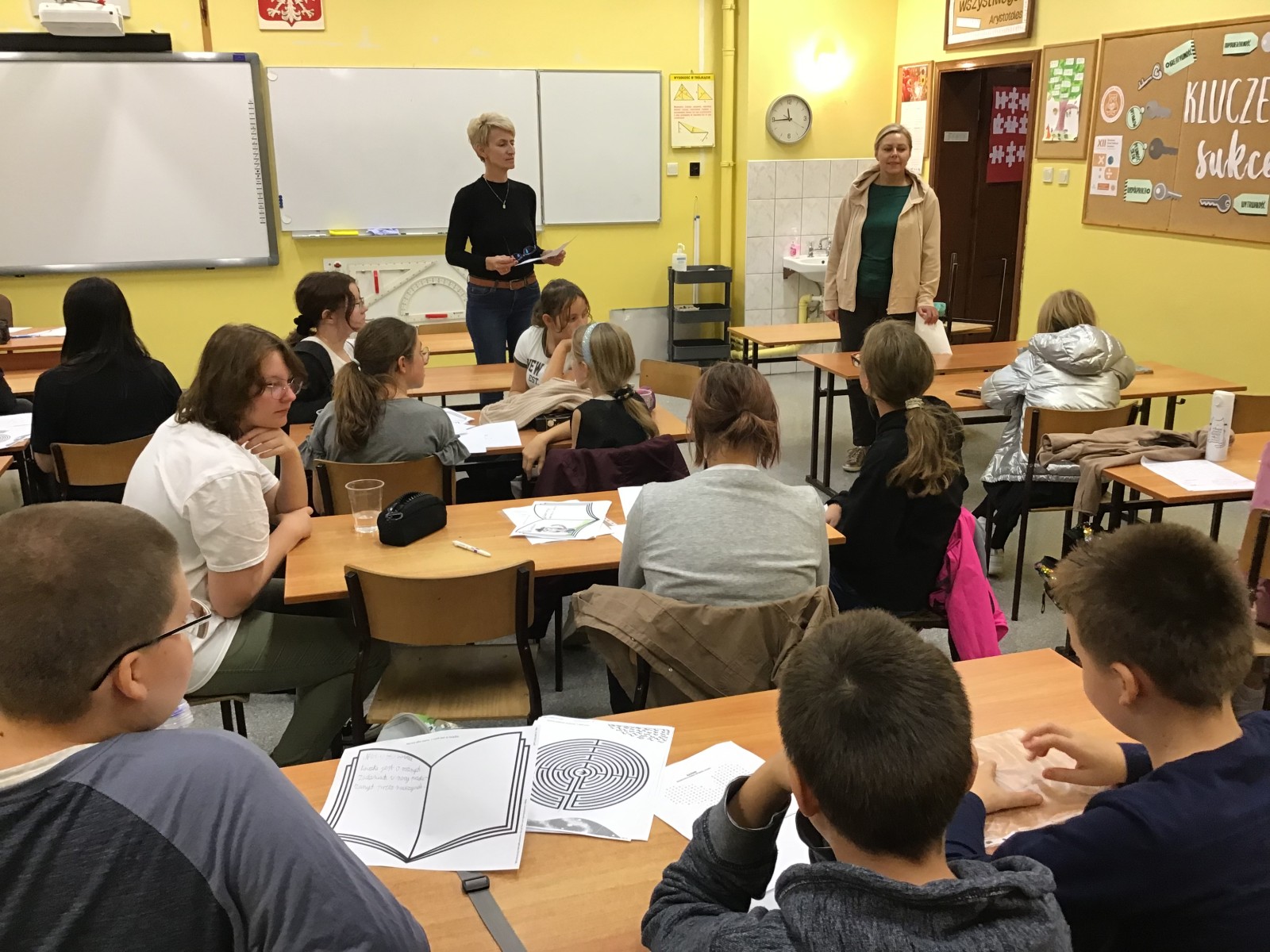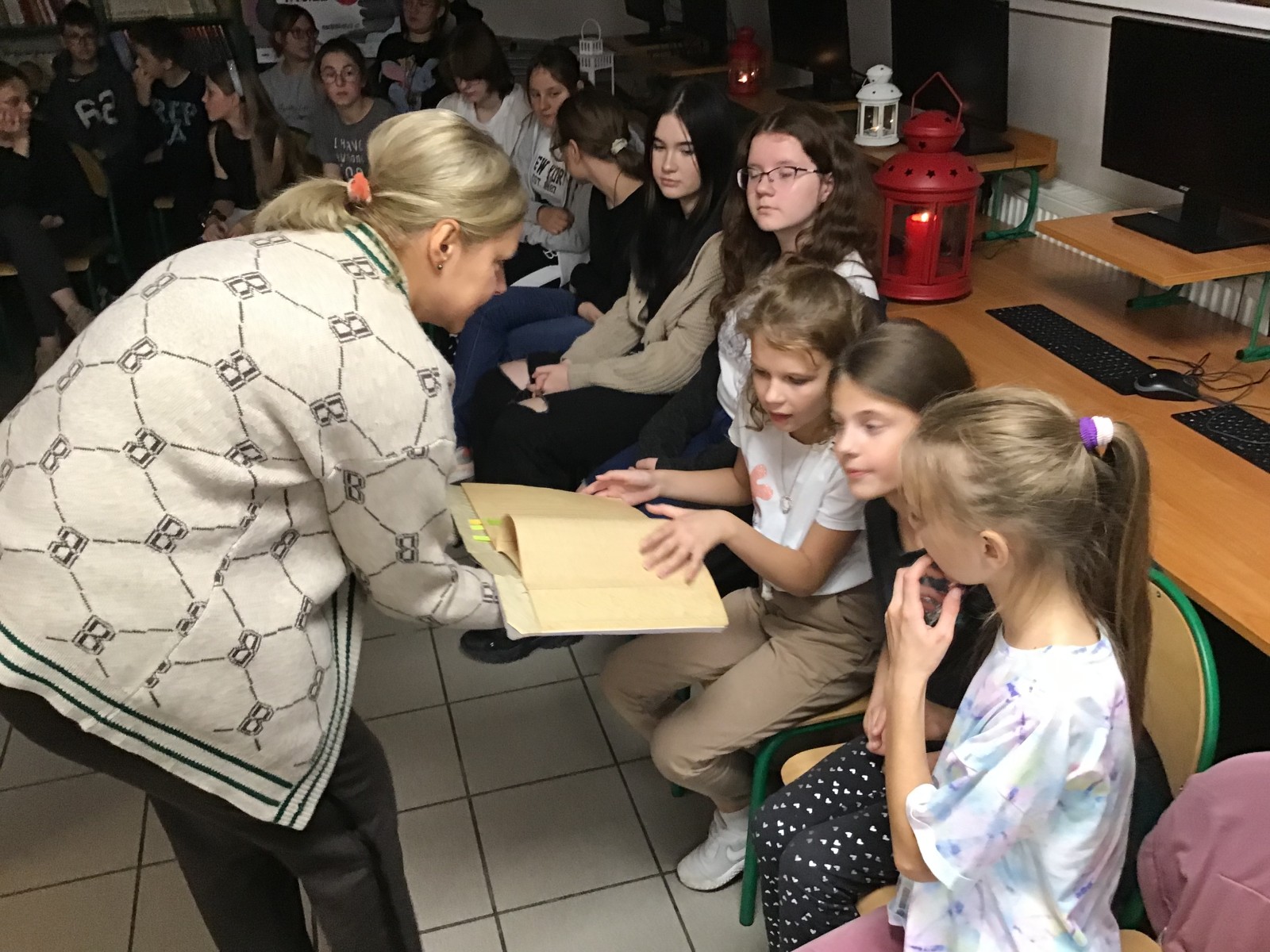 W piątkowy wieczór 30 września wybrani uczniowie naszej szkoły dołączyli do ogólnopolskiej Nocy Bibliotek, której hasło w tym roku brzmiało: „To się musi powieść”. Wieczór rozpoczął się od spotkania z niezwykłym człowiekiem o wielu pasjach i talentach panem Jackiem Dereżyńskim. Podczas spotkania uczniowie usłyszeli w jaki sposób pasje, zainteresowania wpływają na osobisty rozwój człowieka. Pan Jacek opowiedział o tym, co inspiruje Go do pisania wierszy i ballad, które później zostały przeczytane przez samego autora, nauczycieli i uczniów. W dalszej części wieczoru próbowaliśmy naszych zdolności kulinarnych przygotowując pizzę, dekorując stoły i wspólnie spożywając posiłek. Nie zabrakło też aktywności czytelniczych. Uczniowie podzieleni na grupy w przydzielonych salach rozwiązywali zagadki czytelnicze z wykorzystaniem księgozbioru biblioteki. Wieczorne spotkanie zakończyliśmy zabawą w biblioteczne kalambury, która zachęciła wszystkich do aktywnego udziału i dostarczyła wiele pozytywnych emocji. O północy z bagażem wielu wspaniałych przeżyć wracaliśmy do domu.