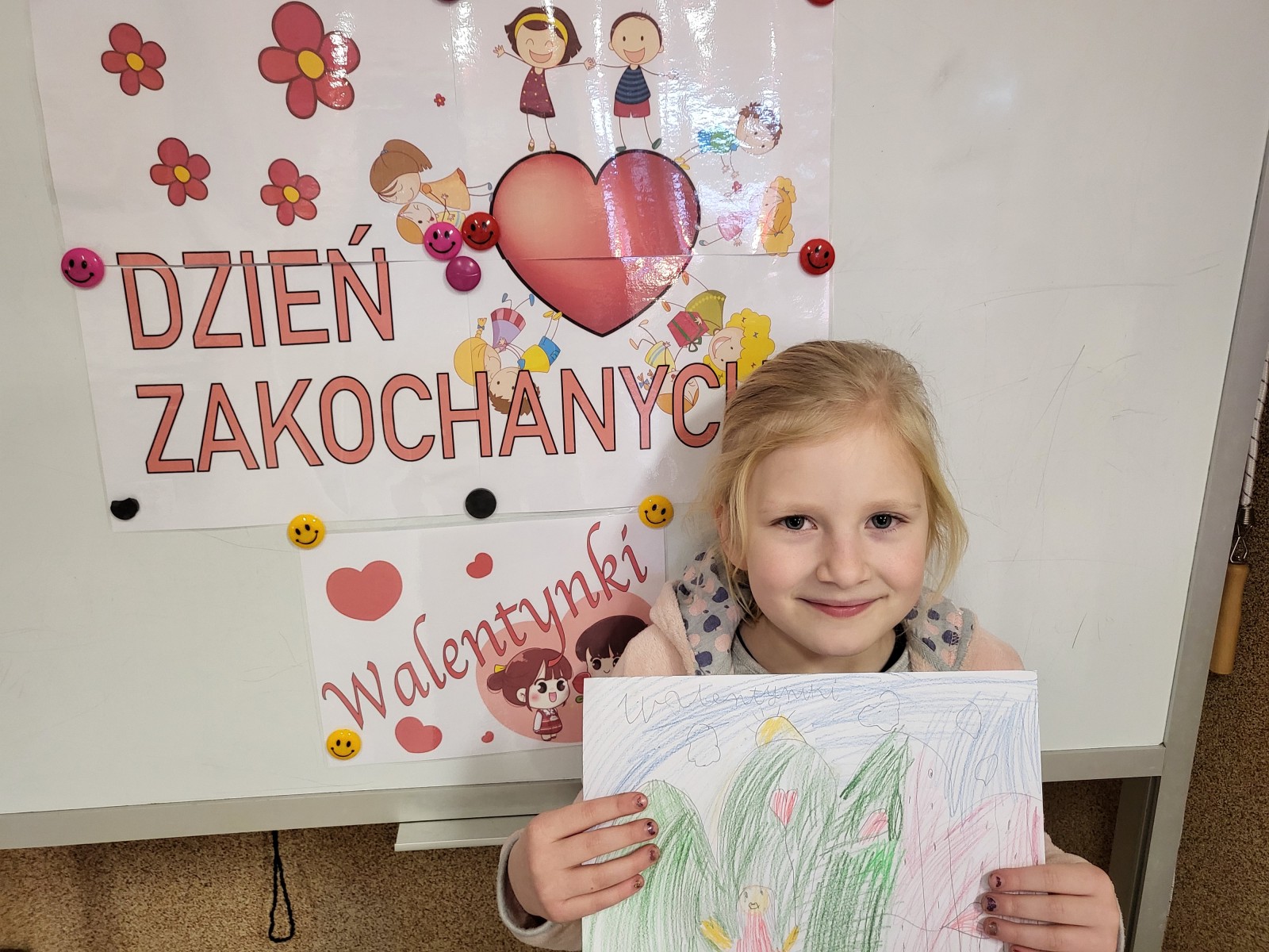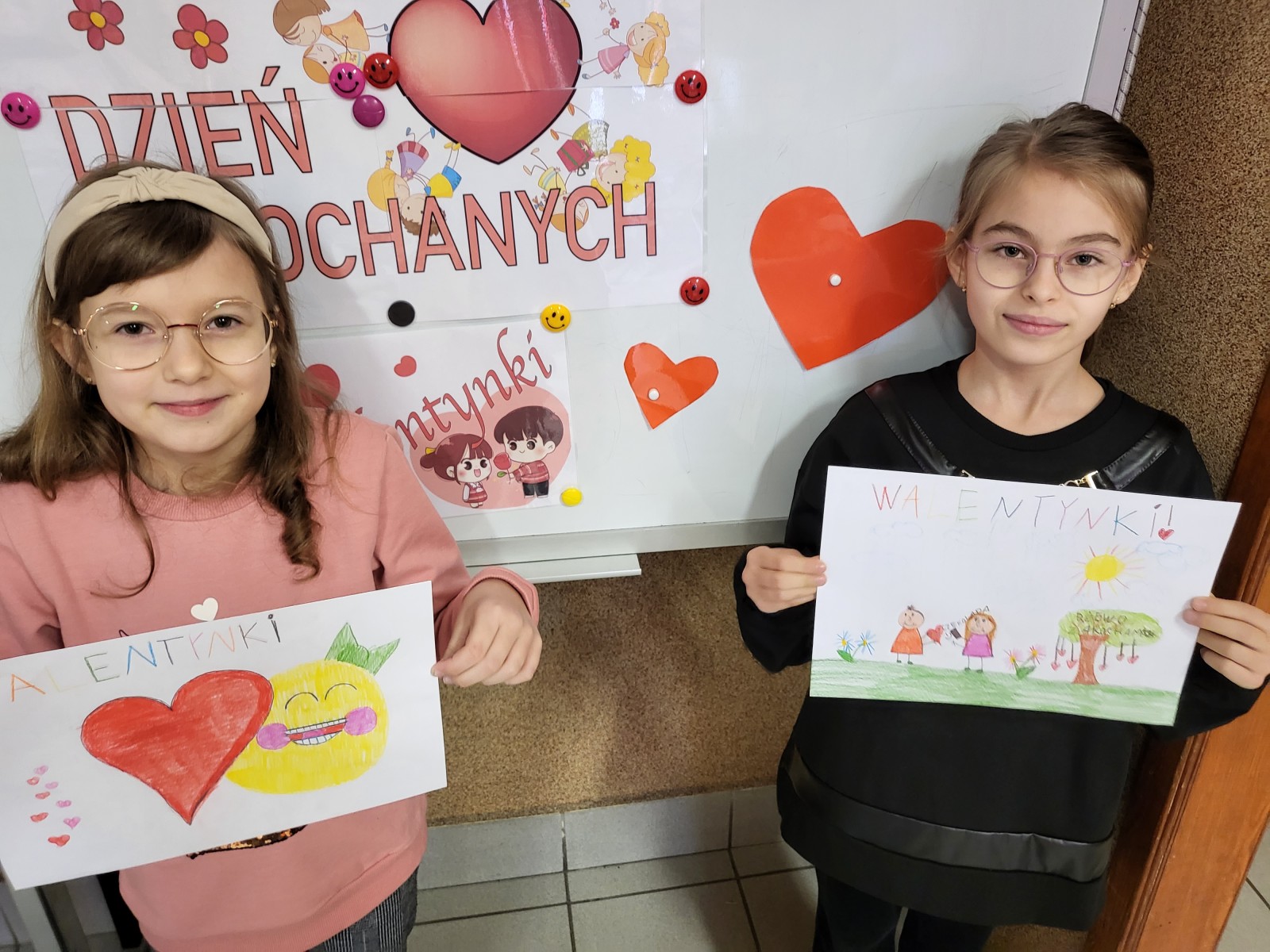 Walentynki obchodzimy 14 lutego w dniu imienin patrona tego święta. Tego dnia zakochani wręczają sobie upominki, sprawiają niespodzianki i piszą do siebie miłe liściki. Nasze Świetliczaki na początku zajęć w tym szczególnym dniu poznały zwyczaje i tradycje walentynkowe oraz historię świętego Walentego. Następnie tworzyły piękne rysunki, które stały się elementem dzisiejszego wystroju świetlicy obok czerwonych serduszek. Dekoracje stworzyły miłą, walentynkową atmosferę.