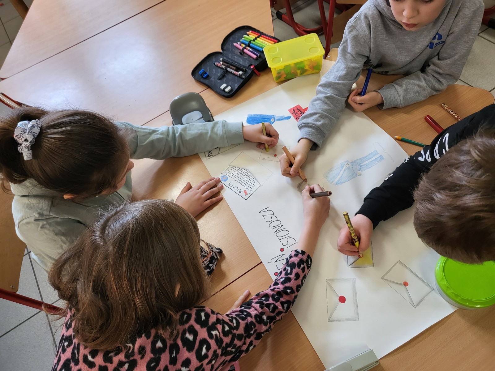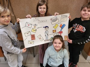 16 lutego obchodzimy Międzynarodowy Dzień Listonoszy i Doręczycieli Przesyłek. Z okazji tego święta nauczycielka świetlicy postanowiła przybliżyć dzieciom pracę listonosza. Zorganizowane zostały zajęcia w czasie których uczniowie uzupełniali wiadomości oraz zapoznali się z licznymi ciekawostkami dotyczącymi pracy poczty. Poznali pochodzenie i symbol Poczty Polskiej- trąbkę. Na koniec zajęć dzieci wykonały pracę plastyczną, której celem było rozwinięcie u dzieci kreatywności.