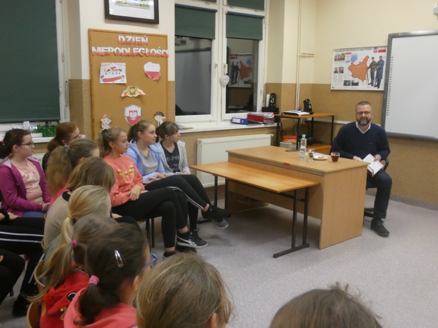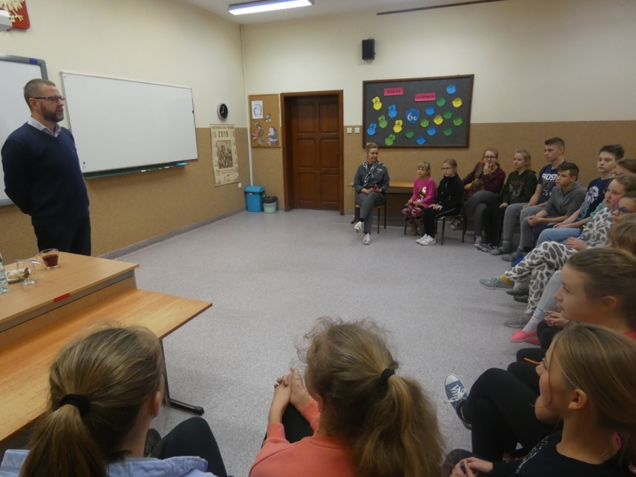 głośne czytanie opowiadania "Szacunek i gorzka czekolada" B. Kosmowskiej przez zaproszonego gościa p. Radosława Kiełbińskiego- kuratora zawodowego,