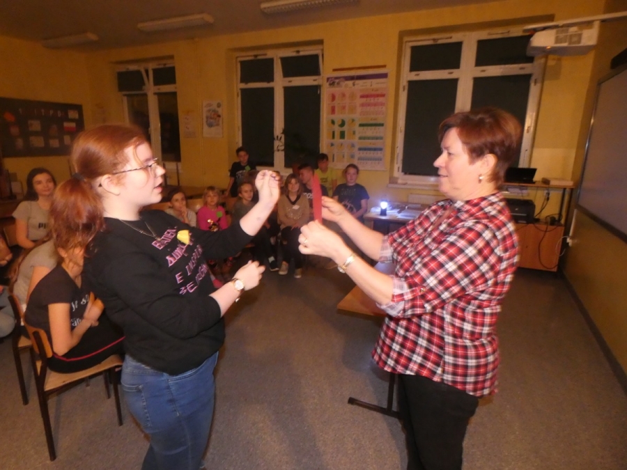 Piątkową noc, z 29 na 30 listopada, grupa uczniów klas III-VIII spędziła w szkole. To niezwykłe wydarzenie czytelnicze było powiązane z projektem "Dobre maniery, drogą do kariery", który realizowany jest w naszej szkole. Nocne zabawy przebiegały pod hasłem "Gdy się dobrze zachowujesz, radość w innych powodujesz". Bogaty program, pełen niespodzianek, przygotowała bibliotekarka p. Teresa Lewandowska we współpracy z pedagogiem szkolnym p. Kariną Schubert i nauczycielem edukacji wczesnoszkolnej p. Aldoną Kalupy. A oto niektóre z nocnych atrakcji: