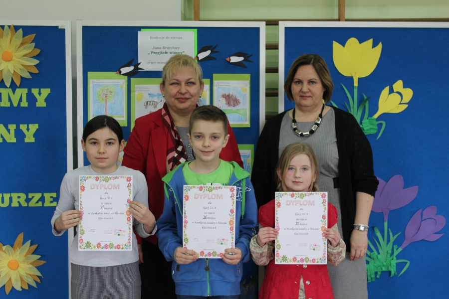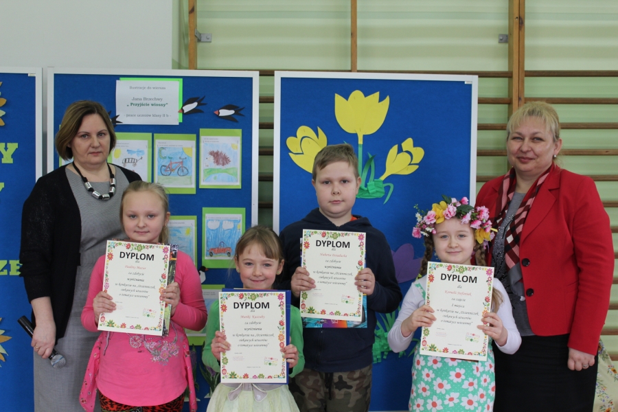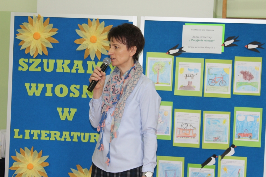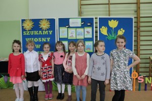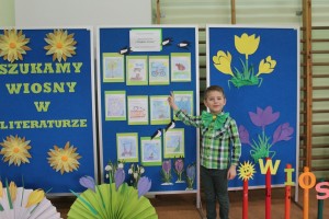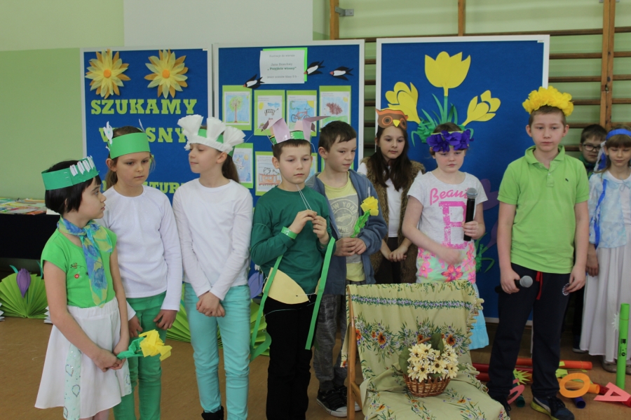 Dnia 22.03.2017r. z okazji Dnia Wiosny odbyło się podsumowanie projektu edukacyjnego pt.: „Szukamy wiosny w literaturze”, którego celem było propagowanie i rozwój zainteresowań czytelniczych oraz uwrażliwienie uczniów na piękno budzącej się do życia przyrody. Skierowany był on do uczniów klas I-III. W ramach tego projektu podjęto szereg działań wspólnych dla wszystkich klas, ale oprócz tego każda klasa miała dodatkowe zadanie do wykonania. Uczniowie pod kierunkiem nauczycieli przygotowali wiele działań o tematyce wiosennej tj. prace plastyczne do wiersza J. Brzechwy „Przyjście wiosny”, przedstawienie teatralne, wiersz własnego autorstwa, piosenkę, strój wiosenny oraz wzięli udział w turnieju wiedzy o wiośnie i w konkursie „Dzienniczek ciekawych utworów o tematyce wiosennej”. Działania podjęte w ramach projektu okazały się bardzo interesującymi dla dzieci i sprawiły im dużo radości przy ich prezentacji.