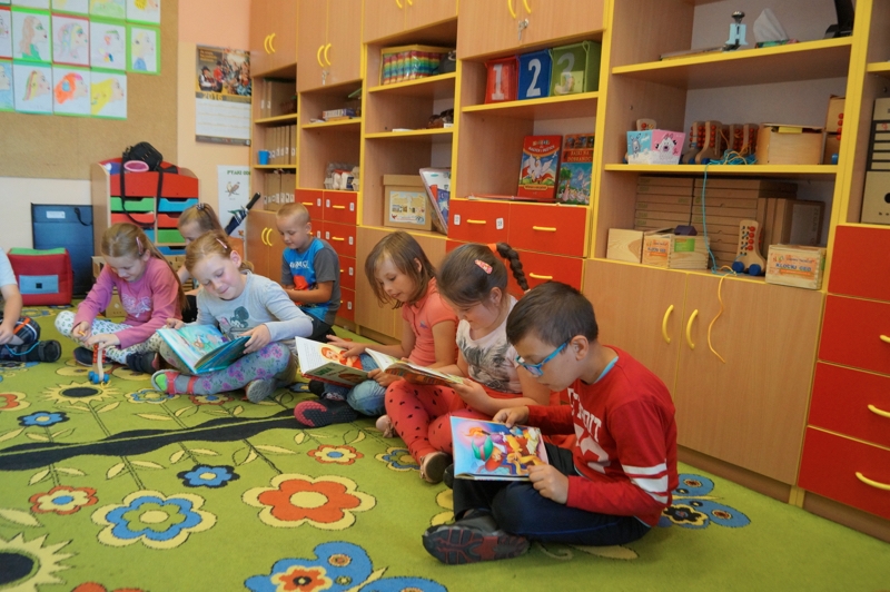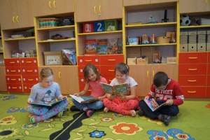 W salach edukacji wczesnoszkolnej zorganizowano kąciki czytelnicze dla uczniów.