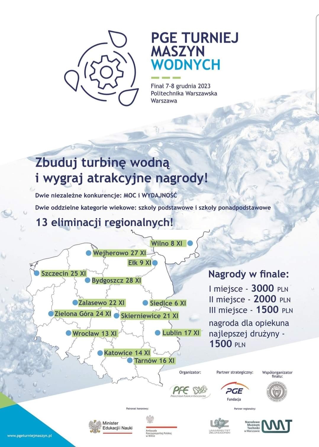 Turniej maszyn wodnych przeznaczony jest dla uczniów klas VII-VIII. Więcej informacji można znaleźć TUTAJ lub u pani Oliwii Foltyn-Strzępki.