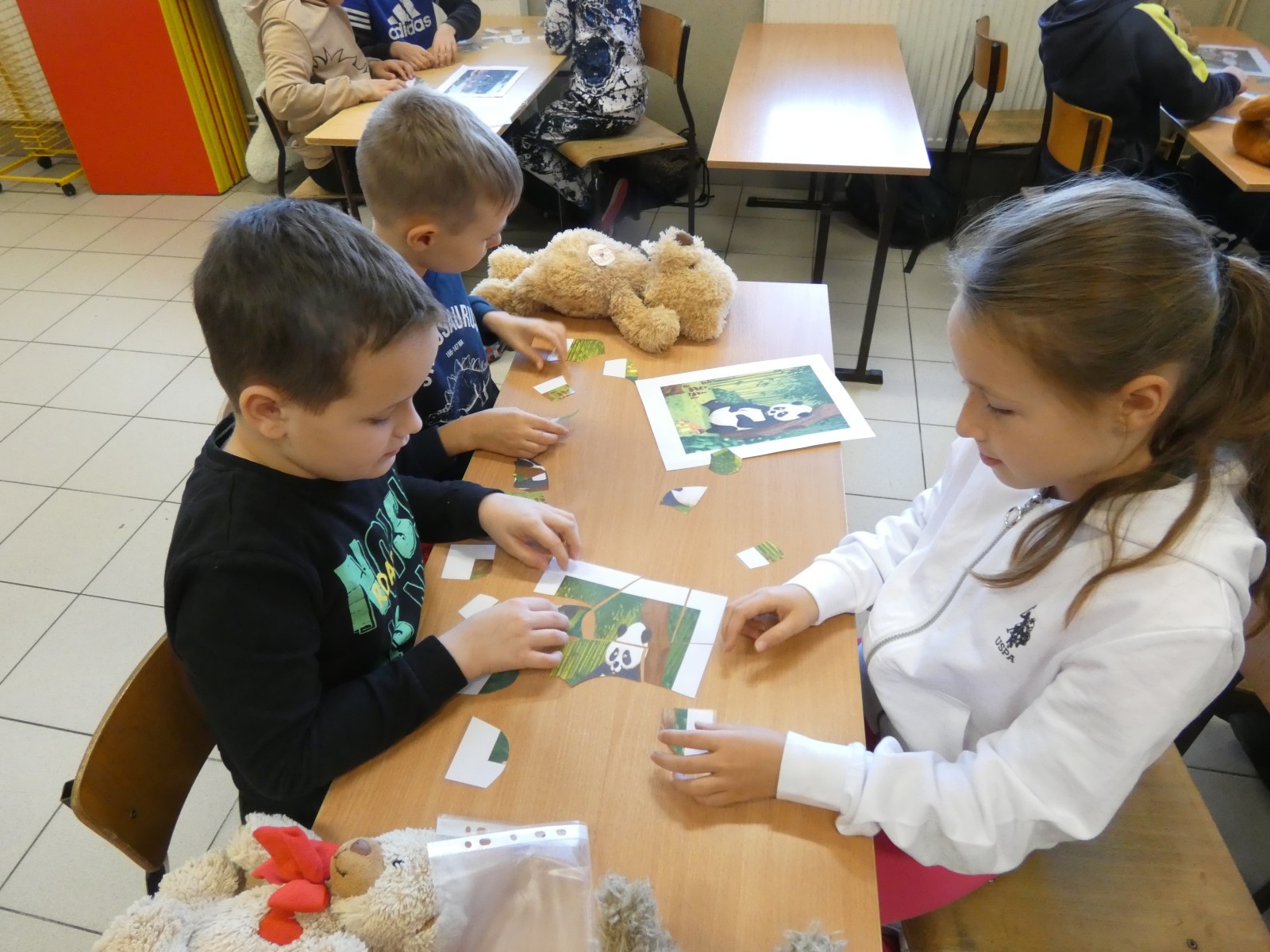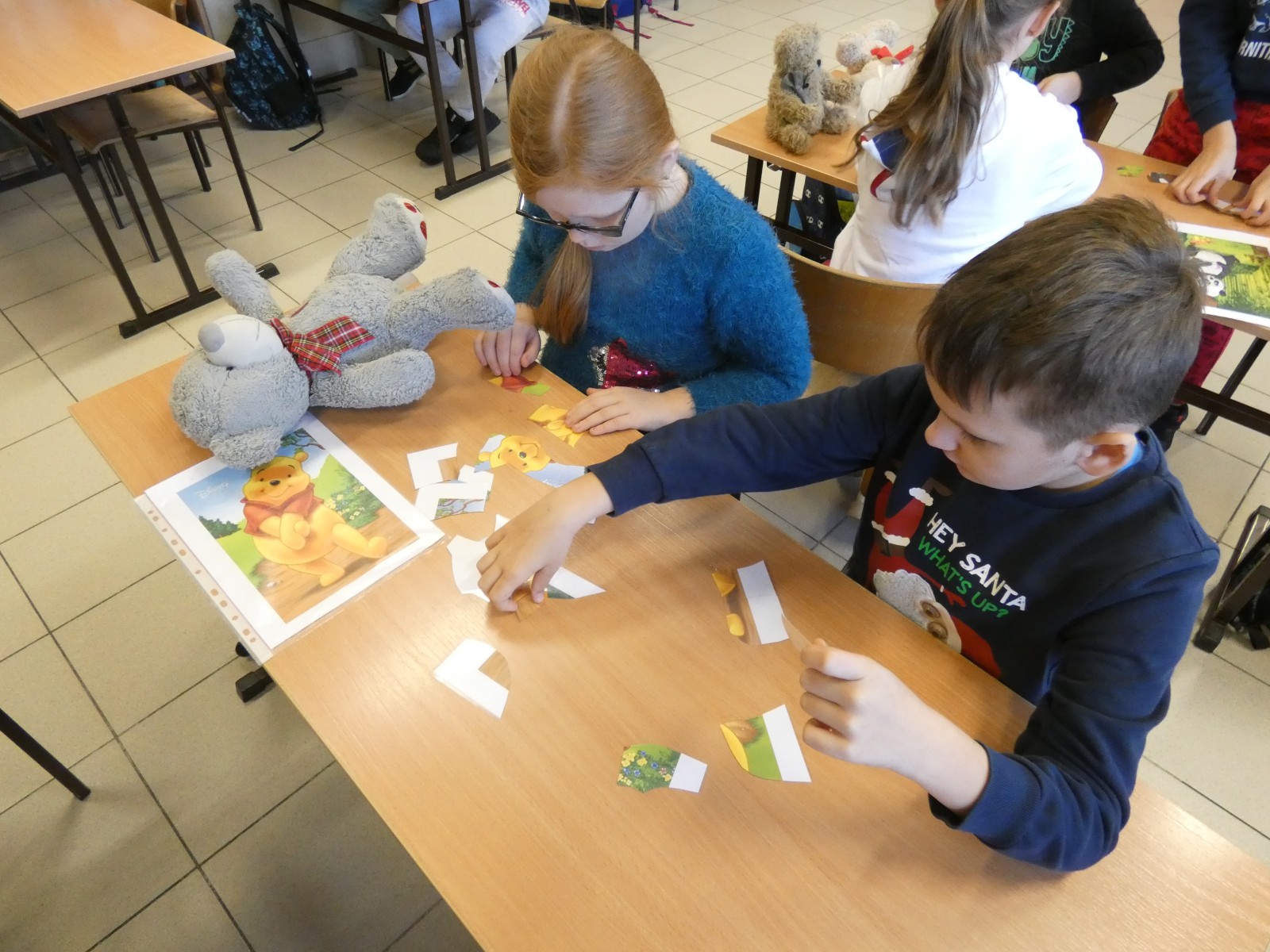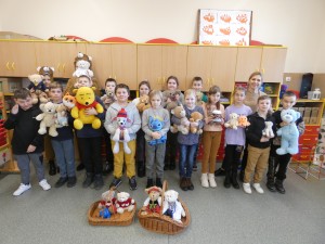 Dzień Pluszowego Misia to wyjątkowe święto, obchodzone 25 listopada, które ma na celu uczczenie jednej z najbardziej kultowych i ukochanych zabawek dzieciństwa – pluszowego misia. W tym dniu uczniowie klas ósmych przygotowali niespodzianki dla swych młodszych kolegów i koleżanek. Na początku przedstawili historię pluszowego misia i jego święta. Następnie sprawdzili, jakie postacie misiów znają uczniowie, prezentując je kolejno na plakatach. Punktem kulminacyjnym było czytanie wierszy o misiach, których młodsi uczniowie uważnie słuchali. Po przeprowadzeniu minikonkursu wiedzy o niedźwiedziach brunatnych, przyszedł czas na wspólną zabawę w układanie misiowych puzzli oraz ruchową w udawanie misi. Wspólne spotkanie zakończyliśmy obdarowaniem uczniów „małym co nieco” w formie cukierka. TL