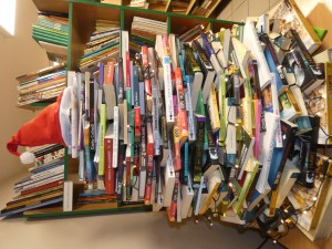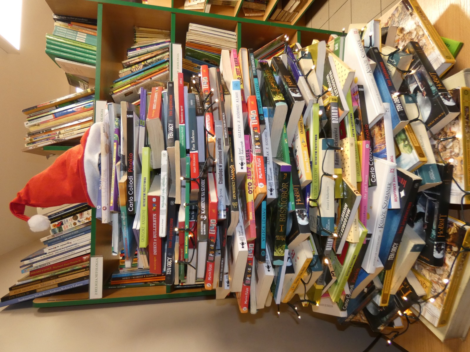 W szkolnej bibliotece pojawiła się książkowa choinka. W tym roku do jej przygotowania wykorzystano tylko lektury, zarówno te obowiązkowe jak i uzupełniające.
