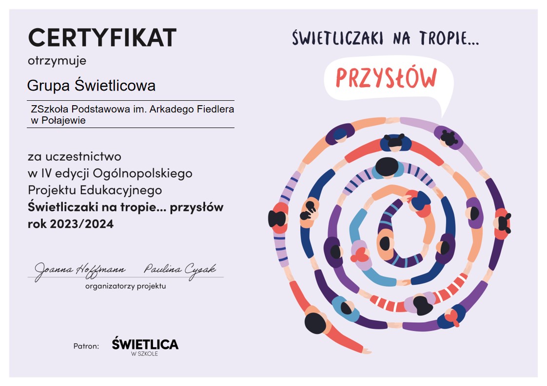 im. Arkadego Fiedlera w Połajewie otrzymała certyfikat udziału w Ogólnopolskim