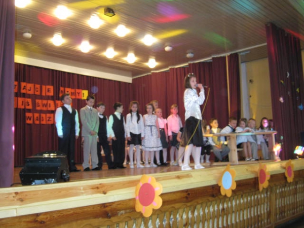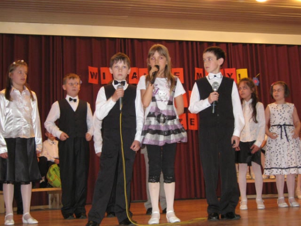 Przyjęcie z okazji \"Dnia Matki\" zorganizowali uczniowie klasy II a i II b wraz z wychowawczyniami Magdaleną Wizą i Pauliną Majchrzak. W pierwszej części szanowne mamy podziwiały występ artystyczny swoich pociech, natomiast w dalszej części miało miejsce wspólne biesiadowanie przy stole z kawą i słodkim poczęstunkiem.
