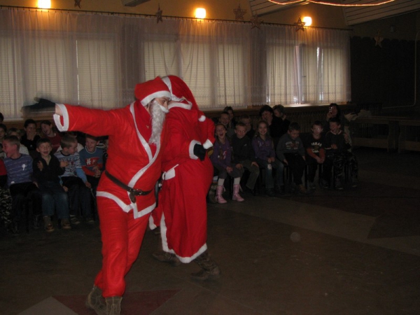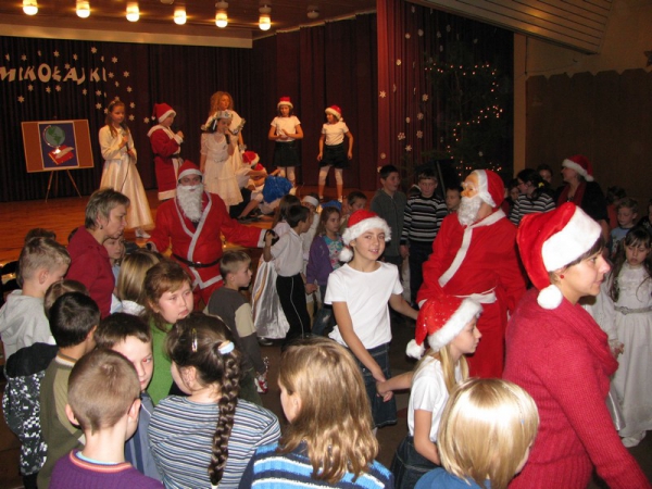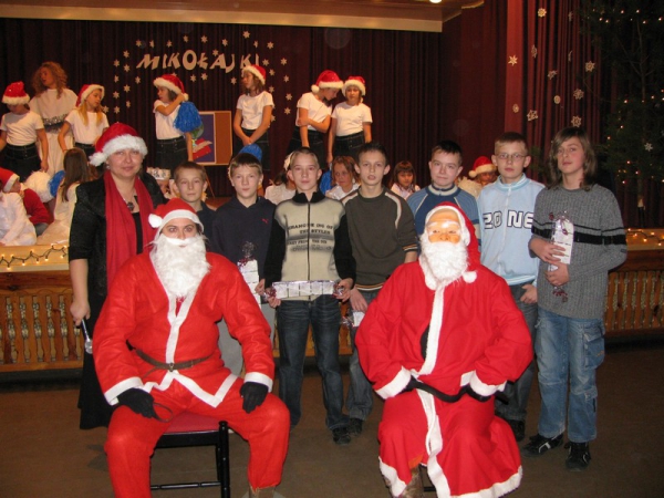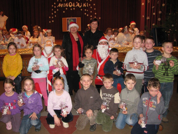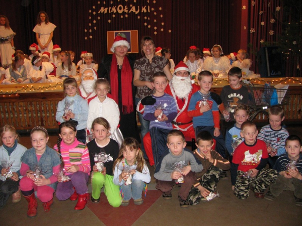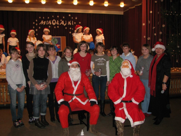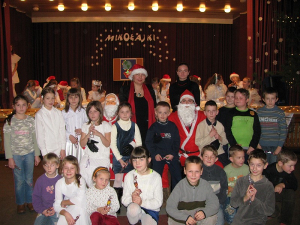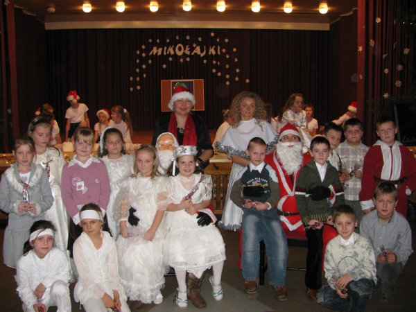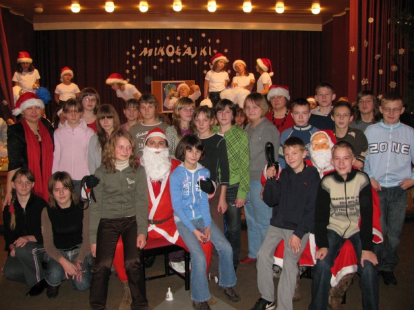 Dnia 07.12.2009 r. odbyły się nasze szkolne Mikołajki, które miały miejsce w GOK - u w Połajewie. Uczestniczyli w nich uczniowie wszystkich klas I-VI podzieleni na dwie grupy: pierwszy pokaz dla klas I-III, drugi dla klas IV-VI. Wszyscy uczniowie z wielkim zaangażowaniem i przyjemnością brali udział w zorganizowanych dla nich zabawach, konkursach i wspólnym kolędowaniu przy choince. Wielką niespodzianką dla wszystkich była wizyta Mikołajów, którzy obdarzyli dzieci upominkami.