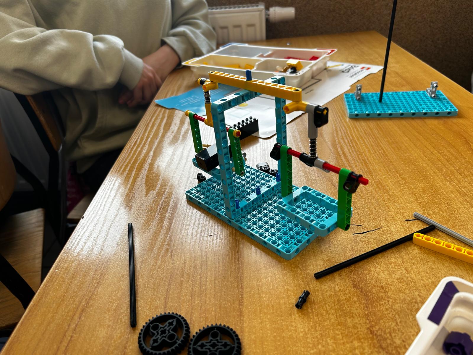 Na lekcji fizyki w klasie 7 nadarzyła się okazja, aby połączyć naukę z kreatywną zabawą w ramach tematu „Tor ruchu, droga.” Dzięki zestawom LEGO Spike zbudowano rower napędzany silnikiem, który miał za zadanie poruszać się zarówno po płaskim terenie, jak i pod górkę.