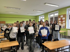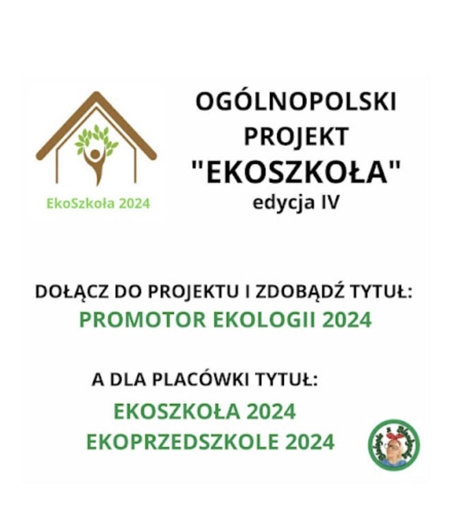 EKO-SZKOŁA 2024 to ogólnopolski projekt mający na celu realizację 10 zagadnień związanych z ekologią takich jak: czysta i dostępna woda, zdrowe i czyste powietrze, przeciwdziałanie zmianom klimatu, odnawialne źródła energii, ekologiczny transport i podróże, zielona przestrzeń wokół, ochrona bioróżnorodności, zdrowa i ekologiczna żywność, odpowiedzialna konsumpcja, gospodarowanie odpadami. W naszej szkole zadania te realizowaliśmy w następujących formach: akcja ekologiczna pt. Wigilia bez plastiku, impreza szkolna pt. Dzień Ziemi, lekcja otwarta na której uczniowie klasy 7b poznawali uprawy ekologiczne, lekcja w terenie na której dzieci klas 4. poznawały świat ślimaków, wycieczka przyrodnicza z klasami czwartymi do Rychlika, doświadczenie udowadniające wpływ zasolenia podłoża na żywotność roślin, warsztaty z sushi na kole kulinarnym, wystawa ekologiczna klas 1-3 dotyczące źródeł odnawialnych, gazetka w klasopracowni na temat budowy pszczół, ulotka informacyjna dla rodziców lub dziadków o sposobach oszczędzania wody. Aby uzyskać tytuł Eko-Szkoły nasi uczniowie wraz z nauczycielami przez cały rok ciężko pracowali, realizując powyższe cele. To, co ujęliśmy w raporcie zbiorczym jest tylko cząstką działań. Zmagania uczniów opłacały się – nasza szkoła otrzymała tytuł EKO-SZKOŁY 2024!. Zapraszamy serdecznie do fotorelacji.