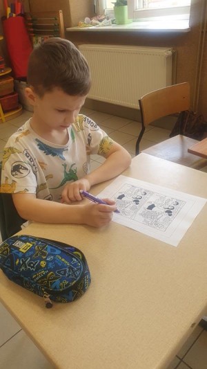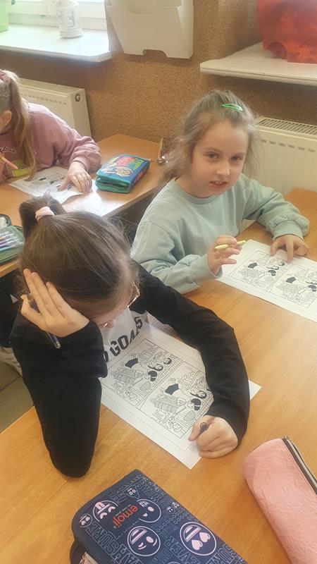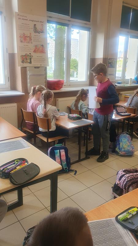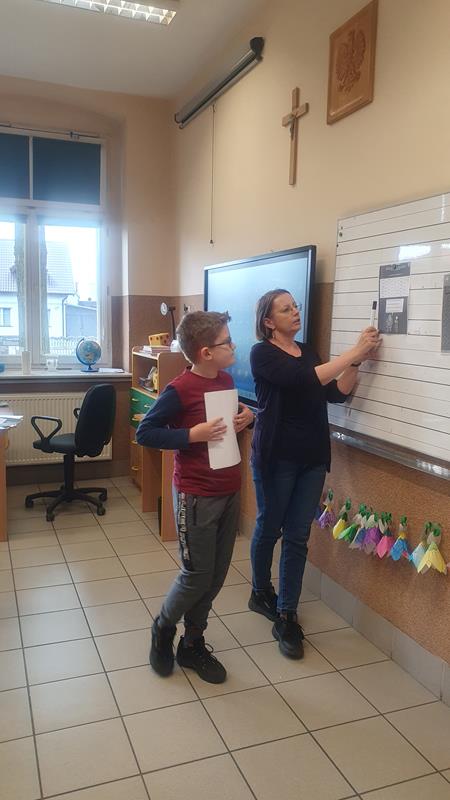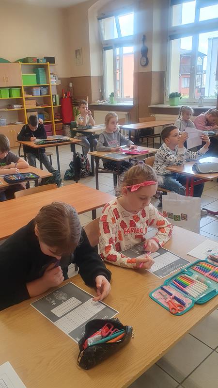 Na jednych z zajęć uczeń wraz ze swoją mamą reklamowali książkę o tematyce detektywistycznej. Uczniowie wykonywali różnorodne zadania przygotowane przez ucznia i jego mamę. Dzieci wcieliły się w role detektywów. Zajęcia były interesujące.