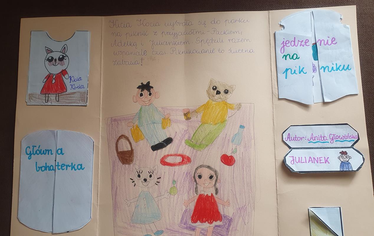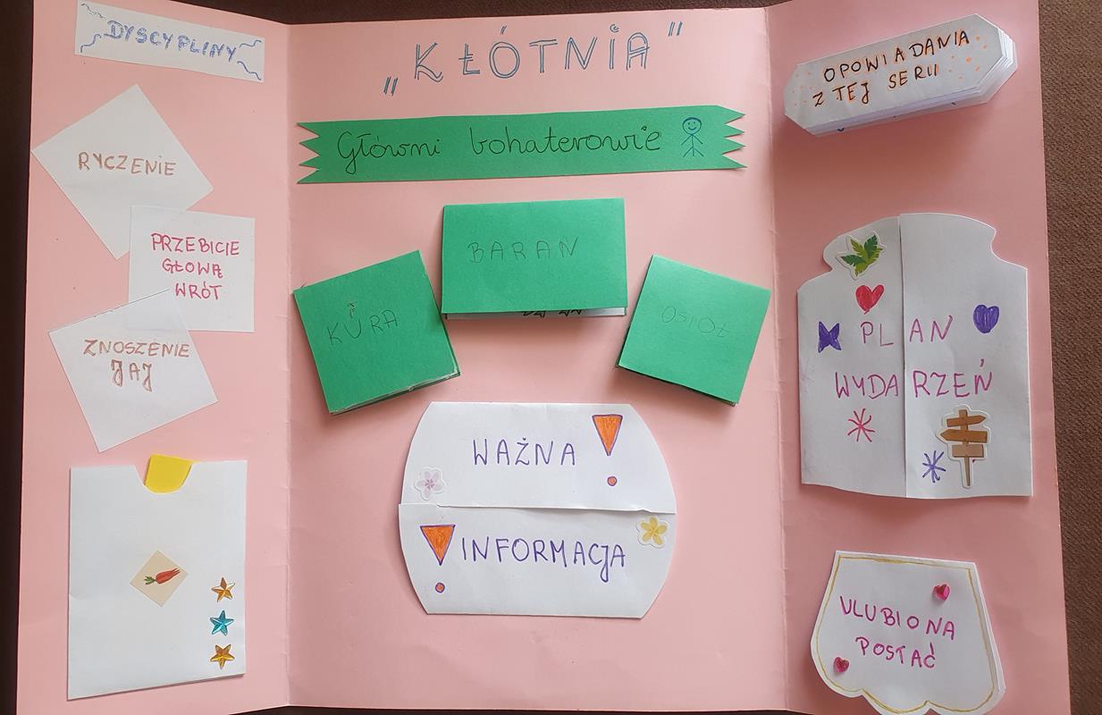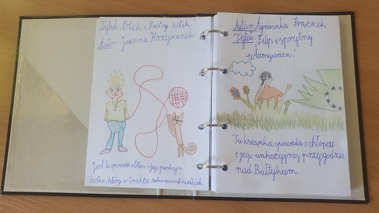 Ciekawym zadaniem okazało się wykonanie lapbooka na temat wybranej przez siebie książki. Kreatywność dzieci była zaskakująca. Zorganizowano również konkurs plastyczny „Mój ulubiony książkowy bohater”. Wszystkie prace wykonano pomysłowo i starannie.